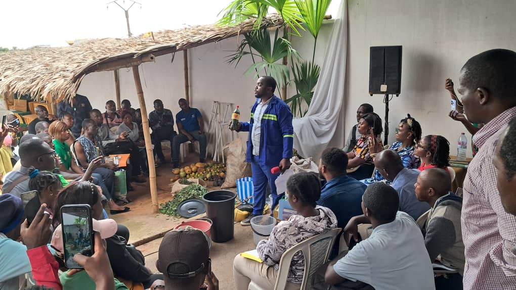 Son équipe a développé certaines techniques de fabrication des bio-fertilisants appelés « engrais liquide complet », produit avec de la banane, la farine de soja, la cendre, la bouse de vache, l’urine de lapin, les feuilles de Tithonia ou marguerite et des micro-organismes (terre forestière). Le détail a été donné pour la fabrication de cet engrais. Pour l’utilisation: «C’est simplement un litre de cet engrais liquide complet pour un pulvérisateur de 15 litres que vous appliquez chaque une ou deux semaines sur vos spéculations. Cela peut être les cultures maraîchères». Le traitement est différent en ce qui concerne les vergers, etc. «Nous avons aussi développé les techniques de fabrication de micro-organismes pour restaurer les sols dégradés; des composts à base de fruits ». Ces engrais assure Julien Azombo Ela, agissent sur la vitesse de croissance, la qualité et le goût des fruits.