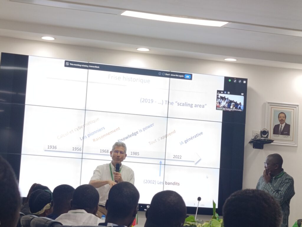 L’atmosphère est studieuse dans la salle des conférences du Centre national du Développement numérique du ministère de l’Enseignement supérieur (Minesup) à Yaoundé, ce lundi 30 mars 2026. Une quarantaine d’étudiants et doctorants écoutent religieusement le Pr. Antoine Cornuéjols, auteur du célèbre ouvrage intitulé: «Apprentissage artificiel : Concept et algorithmes». Lequel ouvrage publié il y a une dizaine d’années, présente les concepts qui sous-tendent l’apprentissage artificiel, les algorithmes qui en découlent et certaines de leurs applications. Avec pour objectif, de décrire un ensemble d’algorithmes utiles en tentant d’établir un cadre théorique pour l’ensemble des techniques regroupées sous ce terme «d’apprentissage artificiel». Le livre s’adresse tant aux décideurs et aux ingénieurs qui souhaitent mettre au point des applications qu’aux étudiants de niveau Master 1 et 2 et en école d’ingénieurs, qui souhaitent un ouvrage de référence sur ce domaine clé de l’intelligence artificielle (IA). On comprend donc toute l’attention des apprenants qui sont conscients d’avoir le privilège d’écouter un maître. La méthodologie participative donne à son auditoire de poser des questions et recevoir des réponses. Lesquelles suscitent d’autres préoccupations, toutes satisfaites au mieux possible.