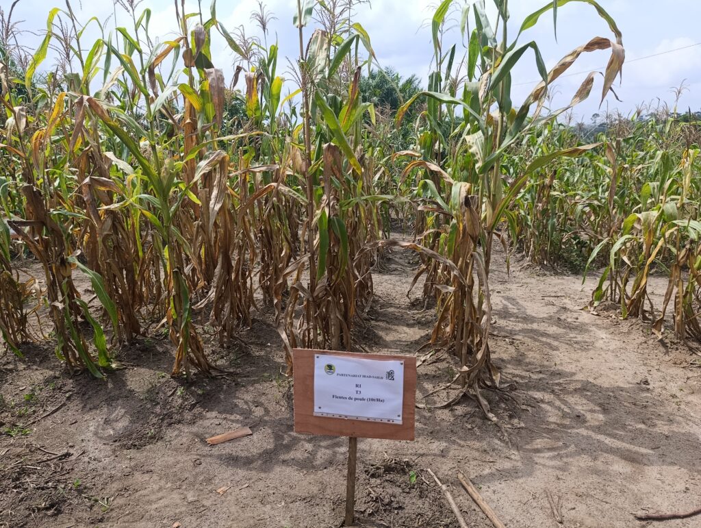 « Il s’agit d’une approche participative de vulgarisation des résultats de la recherche, qui a impliqué, d’une part, la recherche, le service de vulgarisation et conseil agricole, en l’occurrence le Saild, et les producteurs. Il était question pour nous d’expérimenter différentes pratiques agroécologiques qui permettent de restaurer la fertilité des sols et d’accroître la productivité », explique Dr Basga Simon Djakba, chercheur à l’Irad. Pour cette expérimentation, trois pratiques agroécologiques ont été testé pour permettre aux producteurs, un choix éclairé. Il s’agit : du biochar produit à partir des déchets agricoles, la fiente de poule, et l’association céréale-légumineuse, dans ce cas précis, le maïs et l’arachide. La mission conjointe Irad-Saild représentée respectivement Dr Francis Ngome, Directeur général adjoint de l’Irad et Hozier Nana, Secrétaire général du Saild, a permis une évaluation sans complaisance des résultats obtenus et du niveau d’appropriation des paysans.